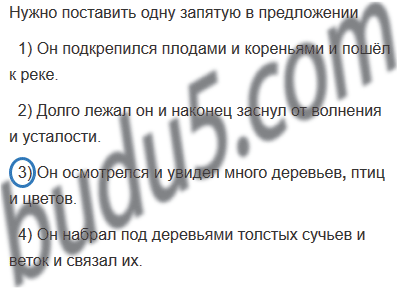 3) Он осмотрелся и увидел много деревьев птиц и цветов.